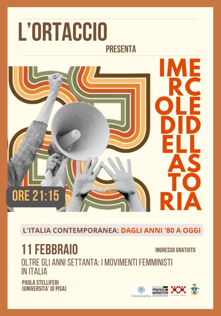 L’11 febbraio alle 21:15, al Circolo Arci L’Ortaccio di Vicopisano (via Loris Baroni 14), Paola Stelliferi, (Dipartimento di Civiltà e Forme del sapere) parlerà dei movimenti femministi in Italia dagli anni’80 a oggi.